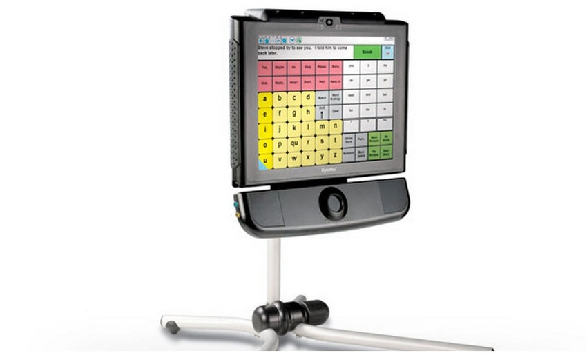 Dyna Vox EyeMax uses eye-tracking technology for computing, tv watching, reading and speak for people with limited mobility. It tracks users eye movements by blink or gazing.