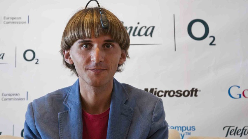 Neil Harbisson invented EyeBorg because he can see only black and white. Strapped to the head EyeBorg can identify 360 hues and send audible tones through bone conduction.