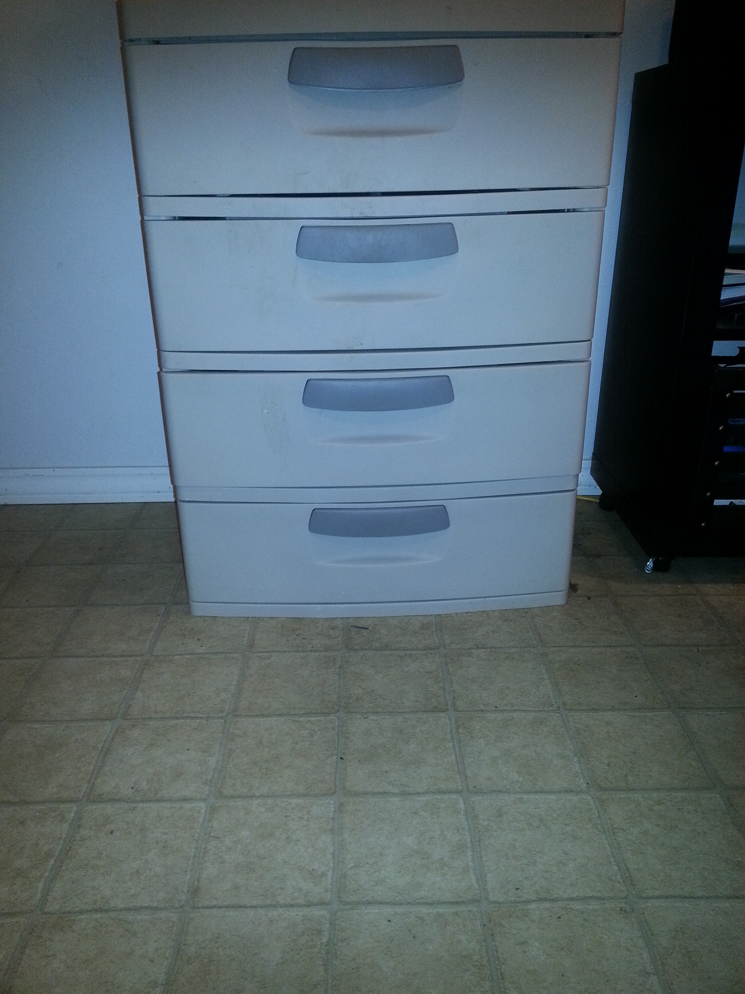 I bought this same style and color in a four drawer chest to house my big utensils, foil, zip lock bags, plastic storage containers and other attachments I don’t use every day. Also found at Walmart for $59. Although my kitchen has a good amount of floor space it only had two small drawers for utensils and the drawers would stick. This little chest has drawers that slide out very smoothly and the drawers are very deep.