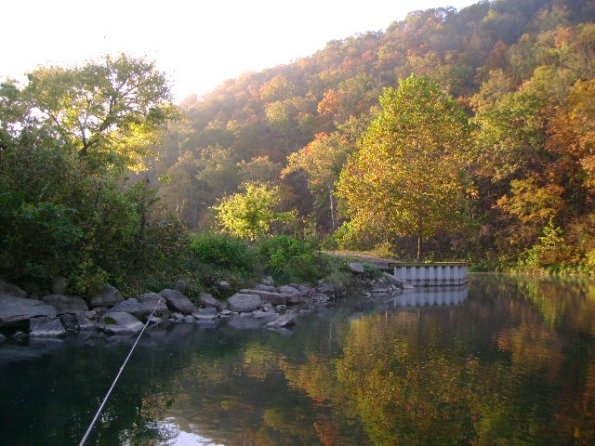 In the Fall the trees are beautiful. In mornings the mist from the ice cold water rises like a mystical cloud.